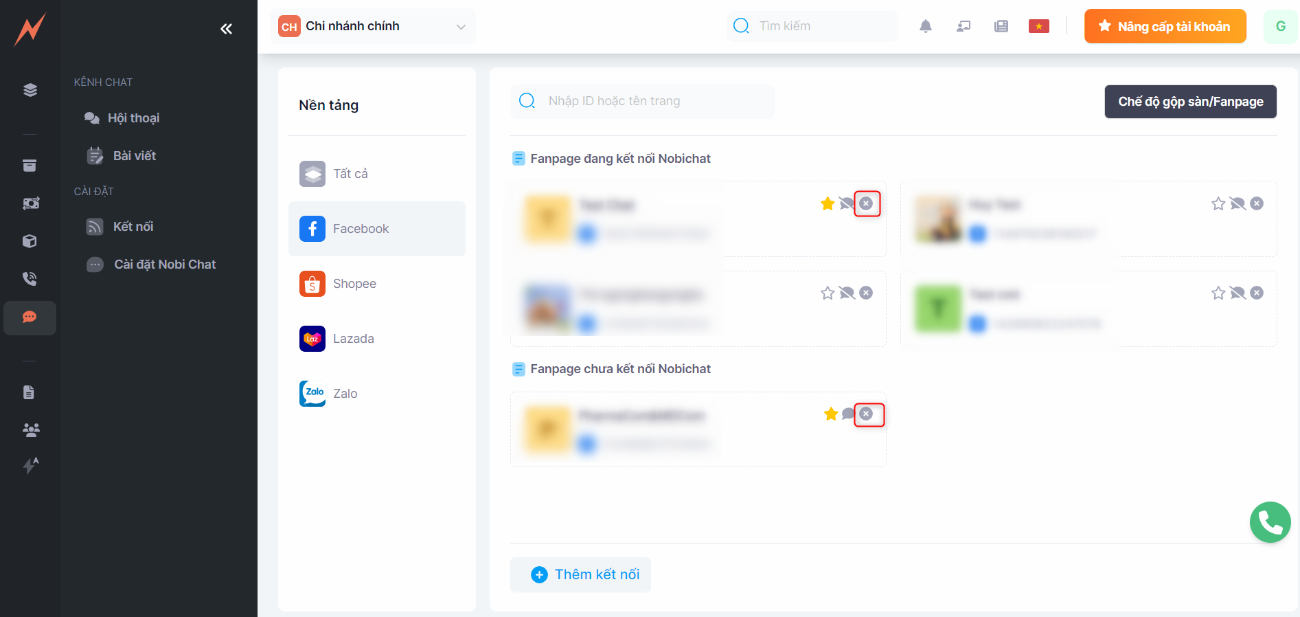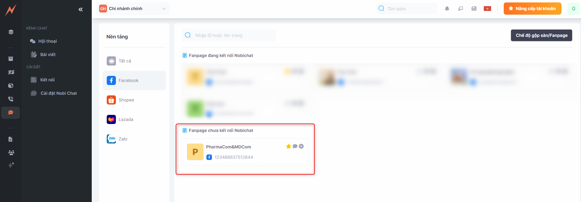 At this moment, the fanpage has been connected to the Nobi Pro system. On this screen, to connect the fanpage to Nobi Chat, you need to click on the "Connect Chat" button.