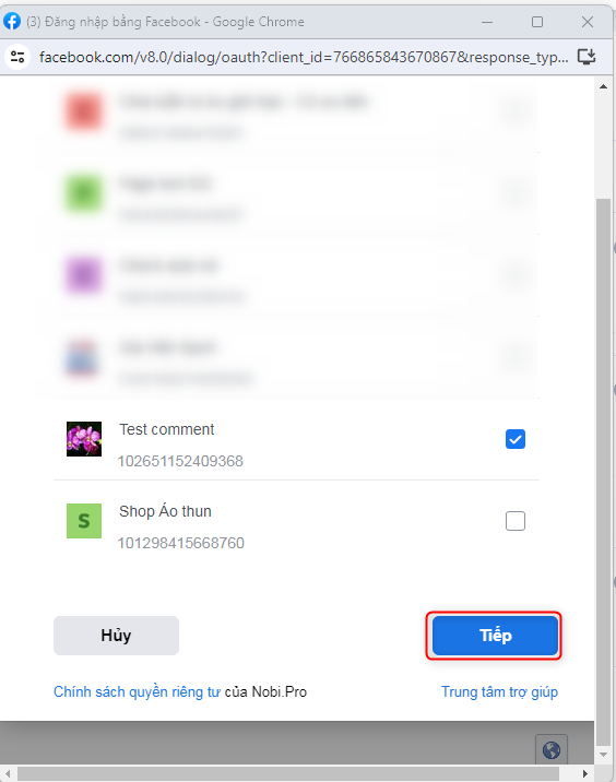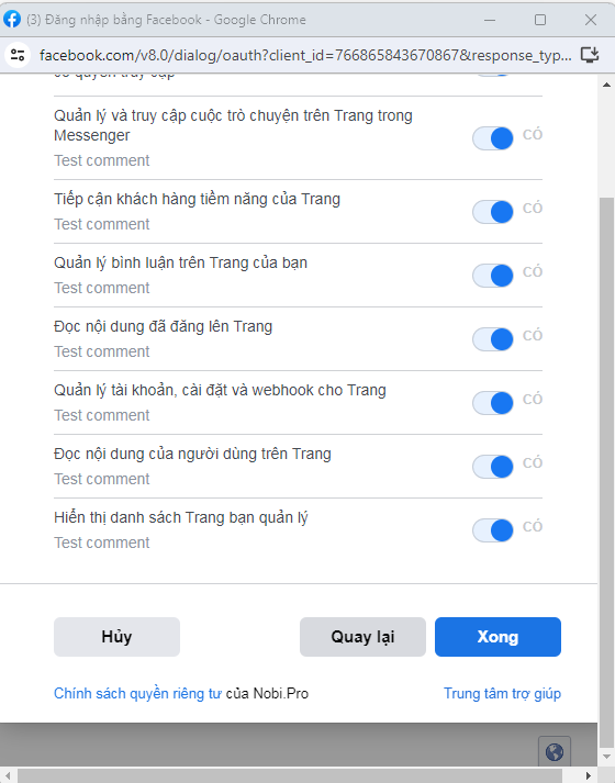 Step 4: Select the Fanpage permissions to allow Nobi.Pro to operate -> Then click DONE.