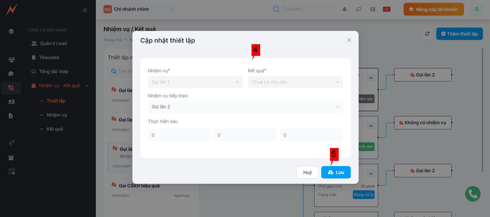 After you have the tasks and outcomes, now you should set up the appropriate results for each task to easily manage the lead list in the system.