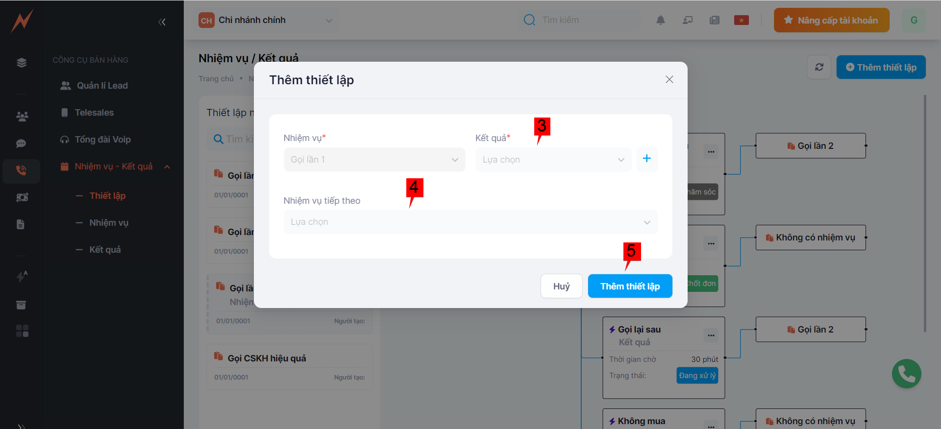 &#x20;After you have the tasks and outcomes, now you should set up the appropriate results for each task to easily manage the lead list in the system.