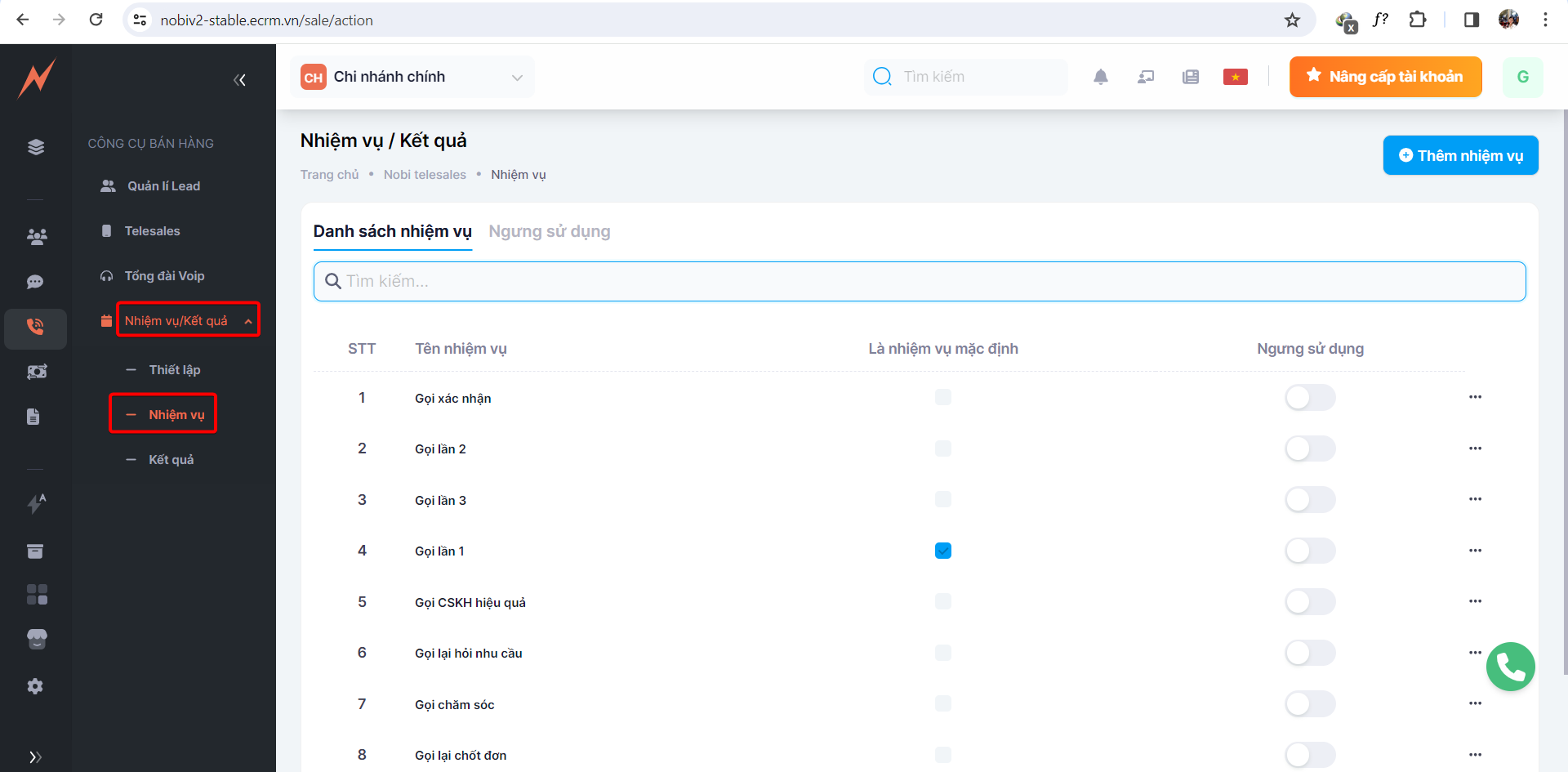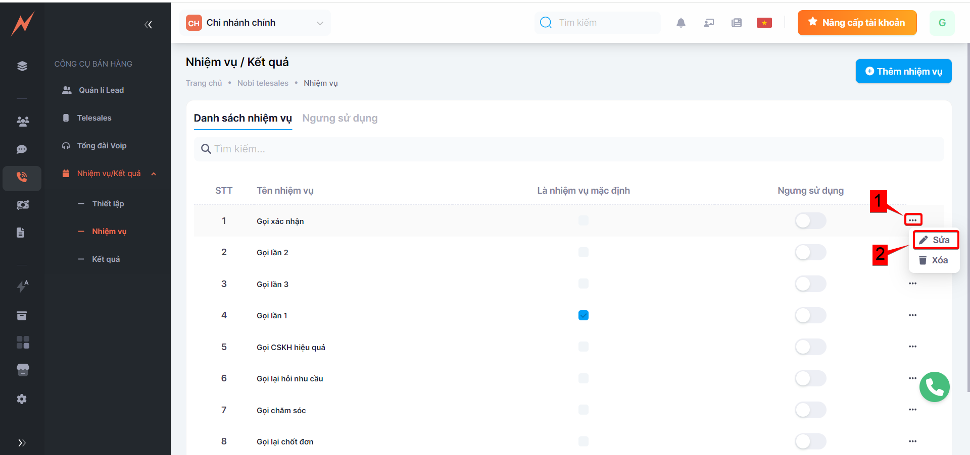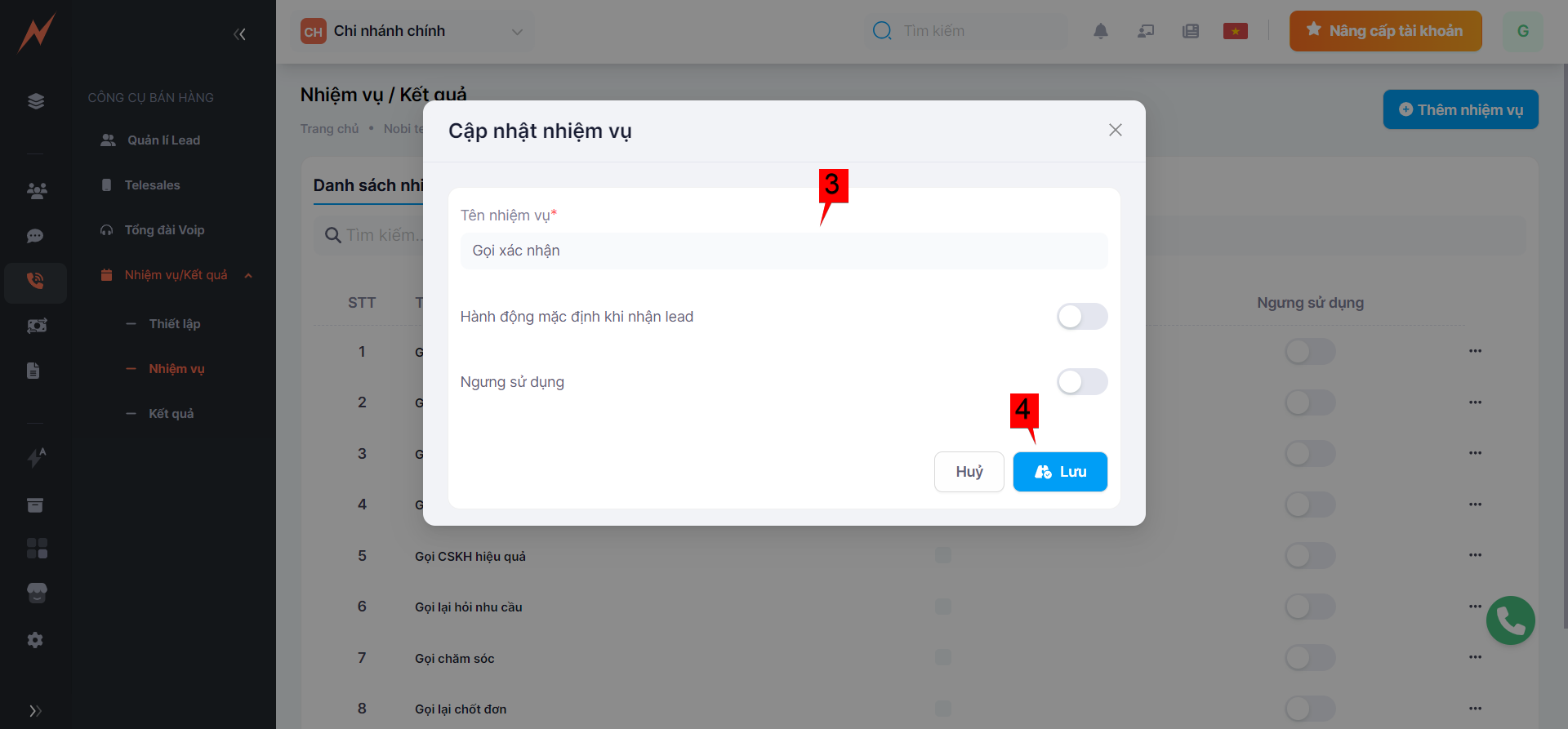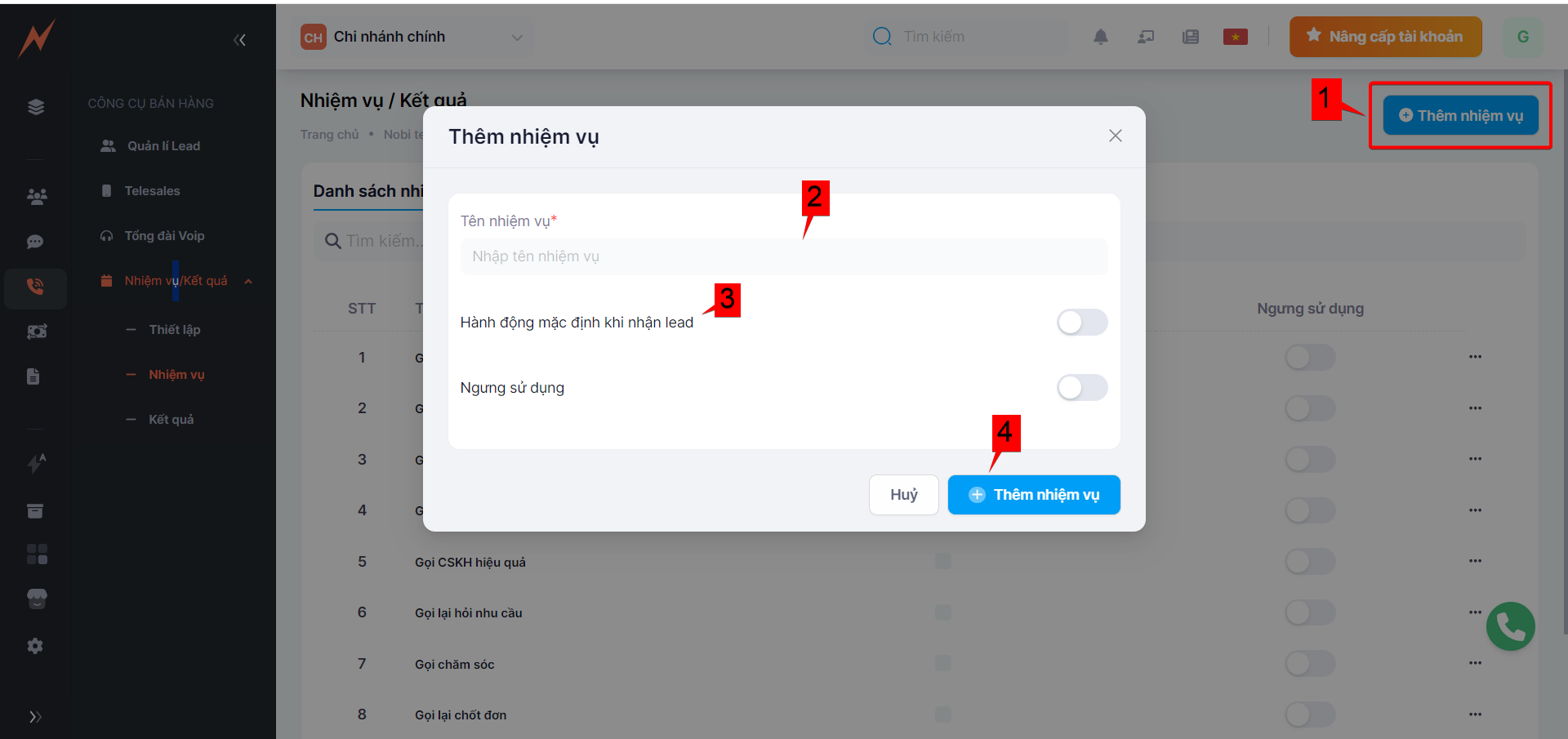 Với mỗi lead đổ về, tùy thuộc vào mục đích của bạn mà tạo nhiệm vụ cho lead đó.