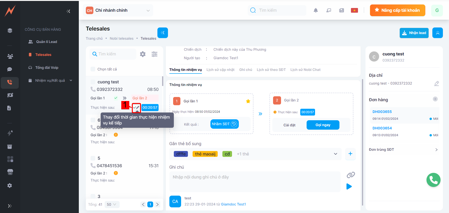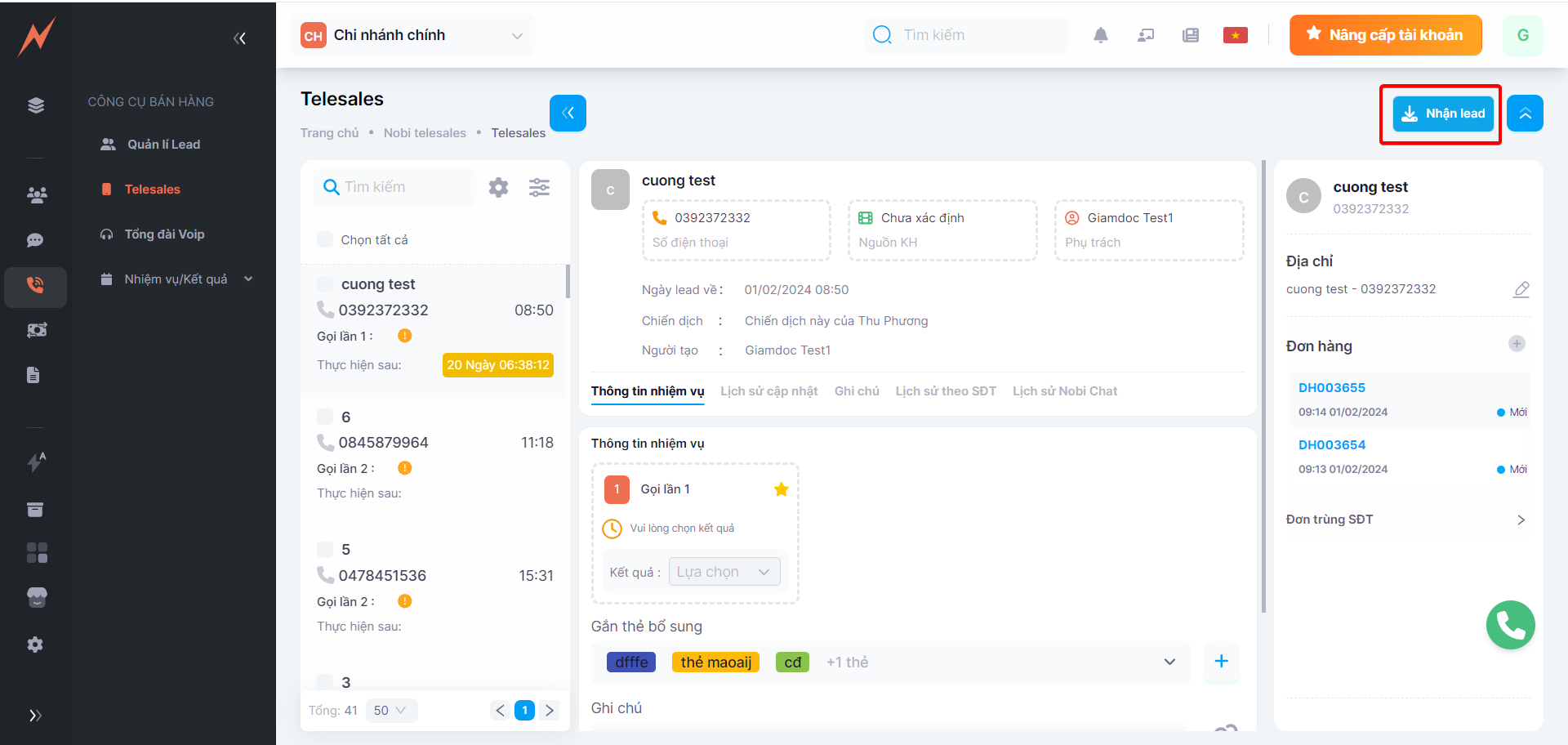 For leads coming from Form options or Ladipage linked with Form options, how can you determine whether those leads have placed an order or not? How can you assign a result to a lead after completing a task? Let's explore some features on the Telesale module of the Nobi Pro system right away.