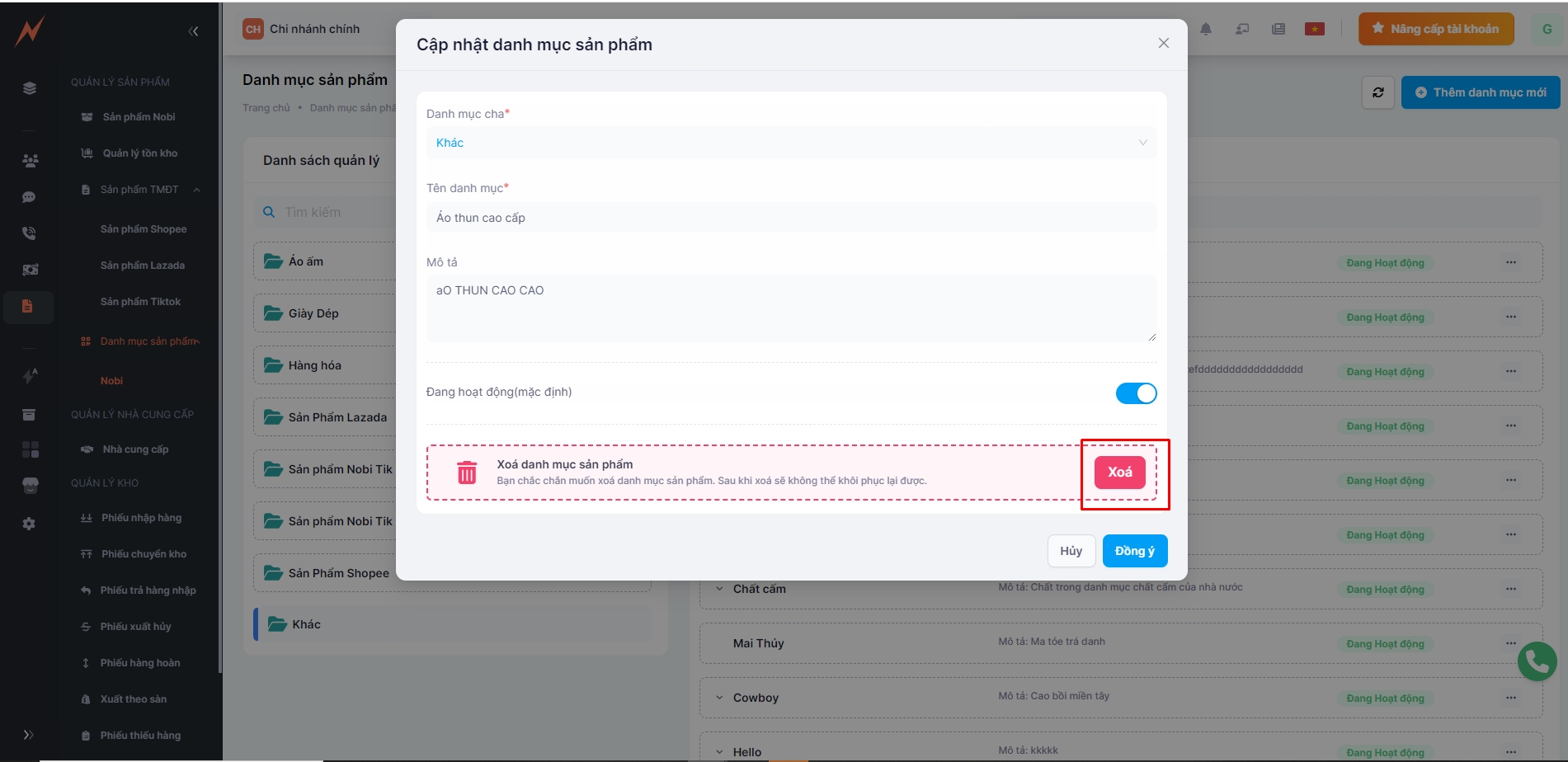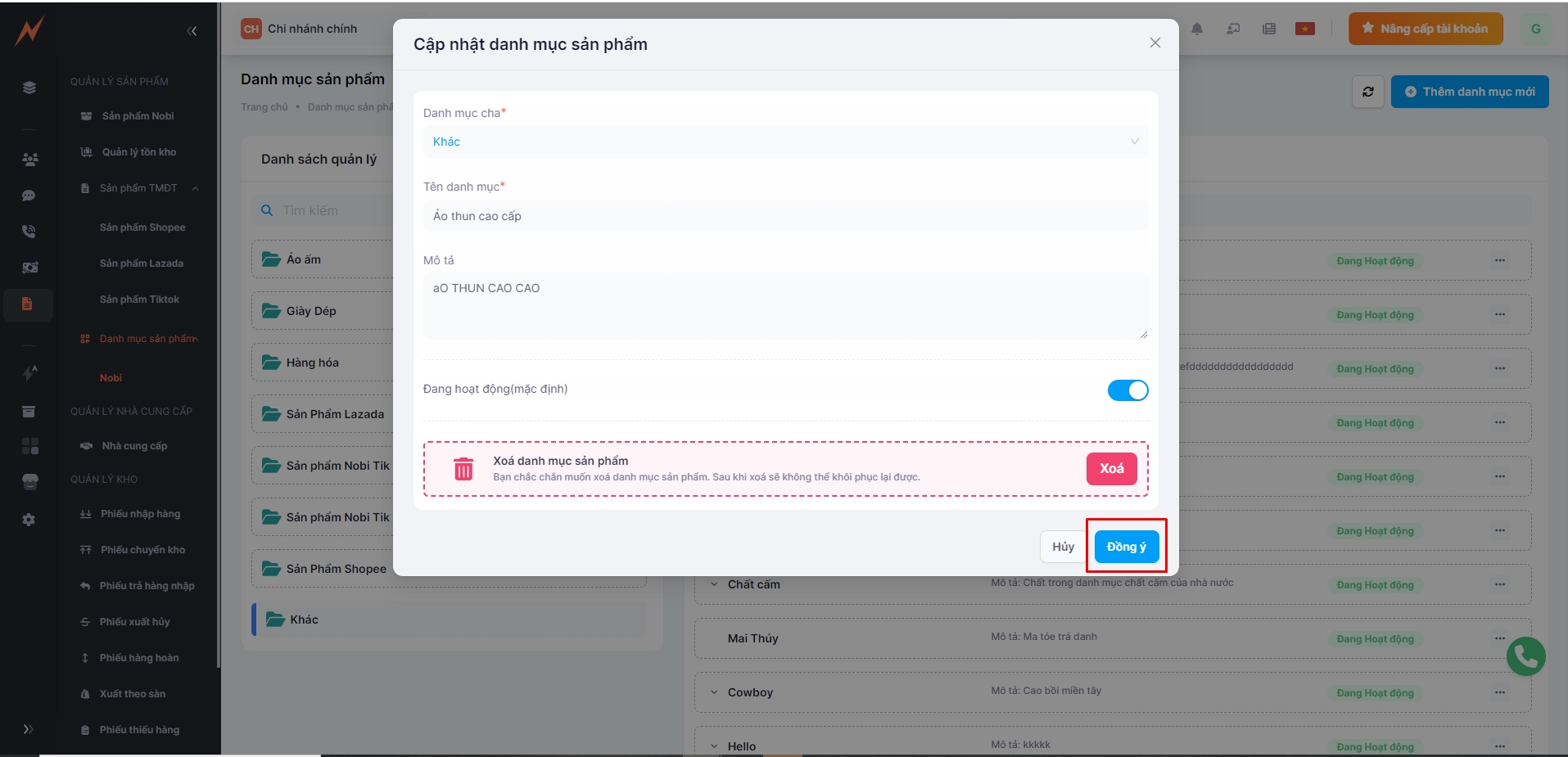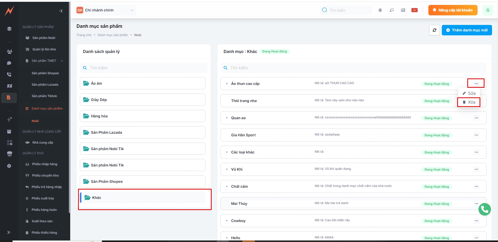Step 3: Click "Thêm danh mục mới" ở danh mục cấp 2 hoặc cấp 3