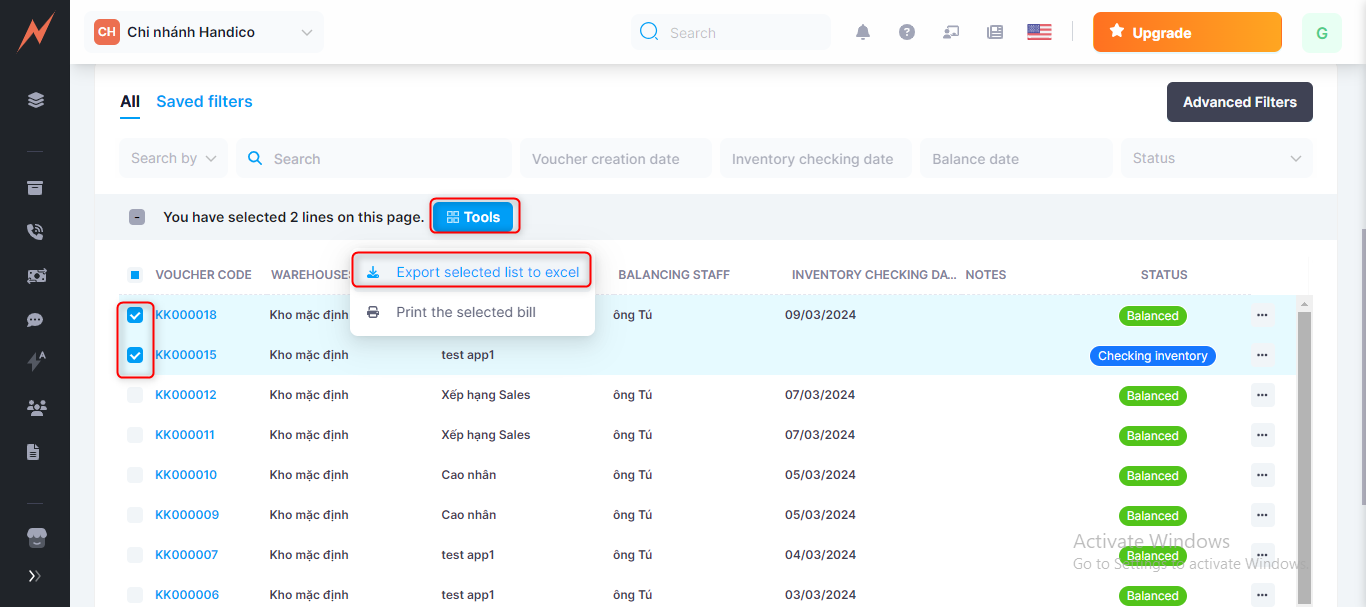 Method 2: Export excel according to the selected vouchers, will be done as shown below.