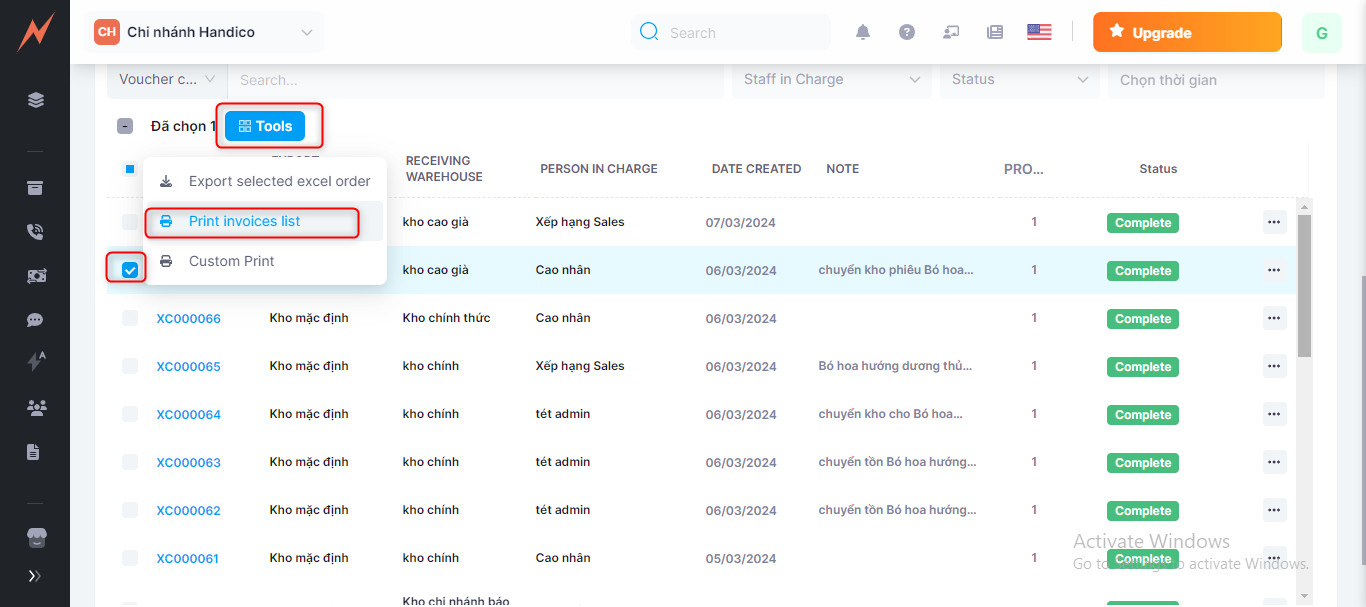 Method 2: Export excel according to the selected vouchers, will be done as shown below.