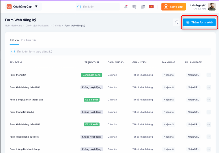 The web registration form is a feature that helps you create a sign-up form on Nobi Pro. You can send the form's embed code to customers, and when they sign up, the information will automatically be saved into the system.