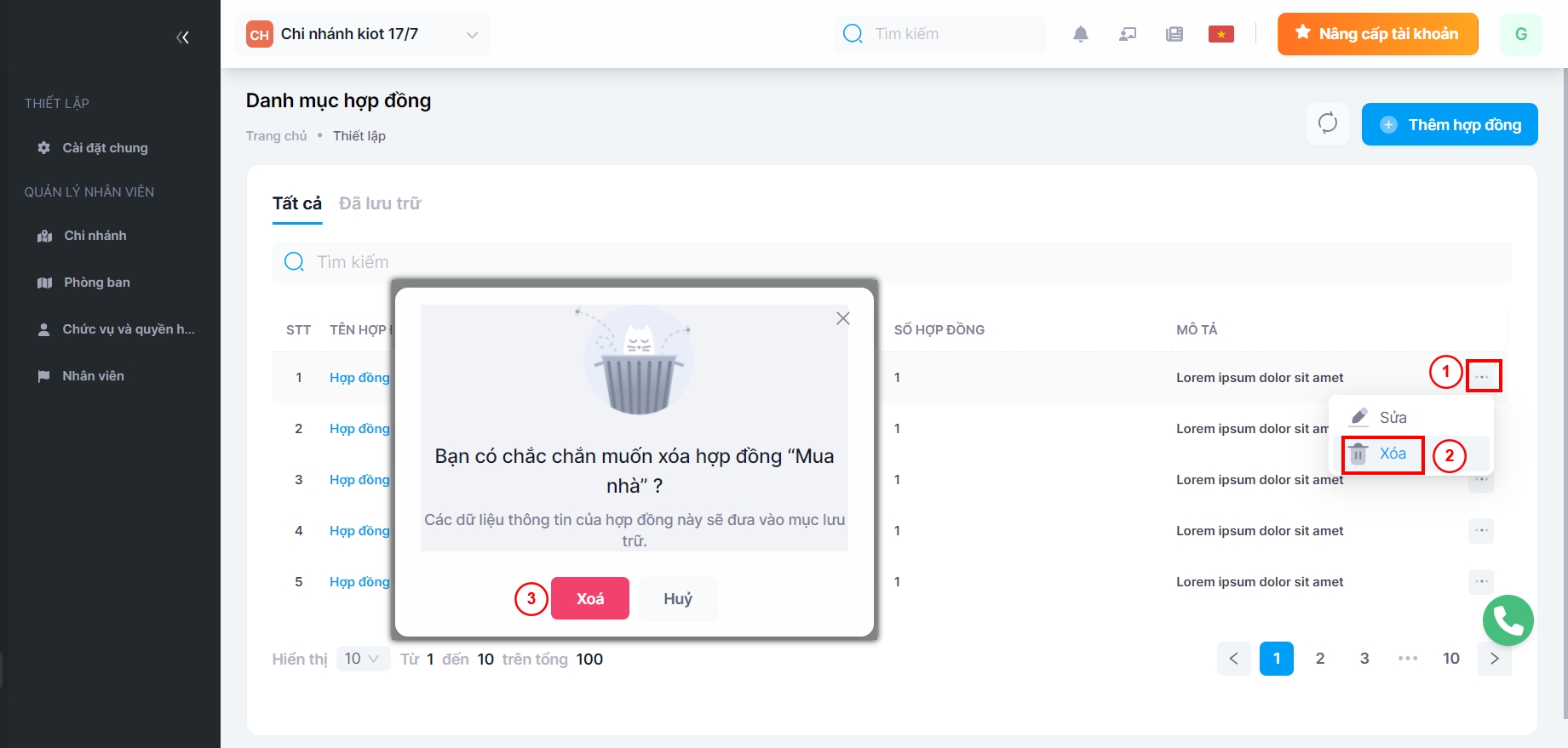 Contract types that are deleted will be archived and managed in the Archived tab after successful deletion. Users can either restore the contract type or permanently delete it from the system.