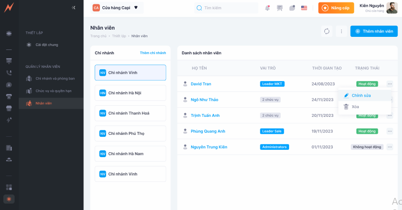Every retail store will need a team of staff. To easily assign tasks, keep records, and evaluate employee rankings, the Nobi Pro system provides a feature to set up user accounts. Therefore, you can create an account for each employee with their own position and permissions. An account will only be able to operate functions that correspond to its given permissions.